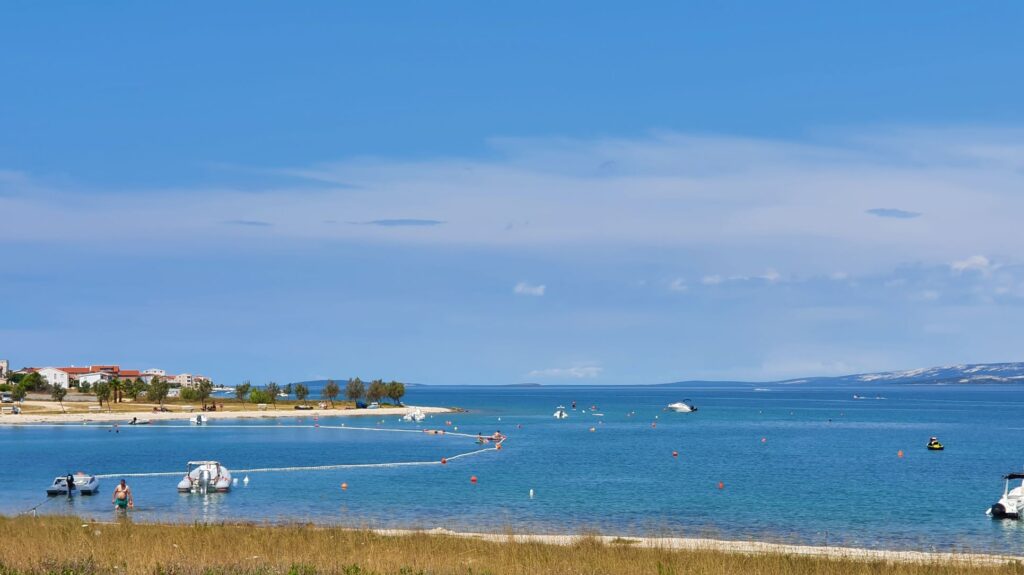Der Strand am Ende der Straße ist kiesig und es vertieft sich langsam, so es ist ideal nicht nur für Familien mit Kindern, aber auch für Liebhaber von SUP und Bootfahren.